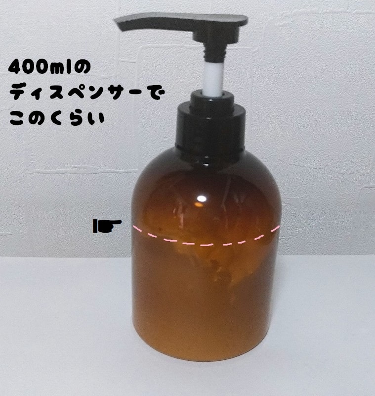 マツモトキヨシのYahoo!店では詰め替え用しかなかったので、一緒にディスペンサー(ポンプボトル)を購入して詰め替えました。